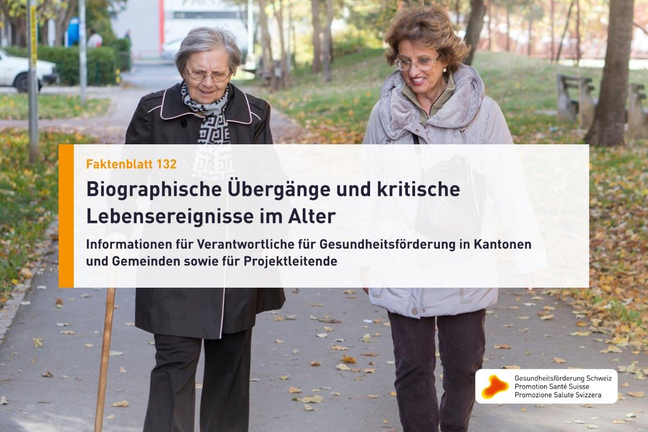 Ob Pensionierung, Tod des Partners / der Partnerin oder Umzug ins Pflegeheim: Das neue Faktenblatt von Gesundheitsförderung Schweiz zeigt auf, wie die Gesundheit älterer Menschen in Phasen des Umbruchs gestärkt werden kann. Es richtet sich an Verantwortliche für Gesundheitsförderung in Kantonen und Gemeinden sowie an Projektleitende.
