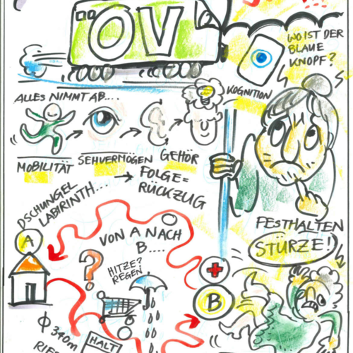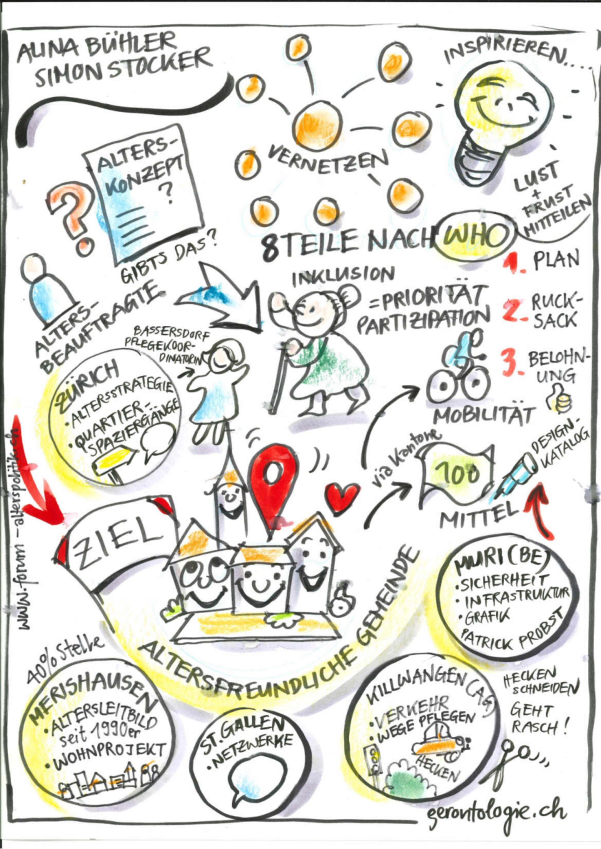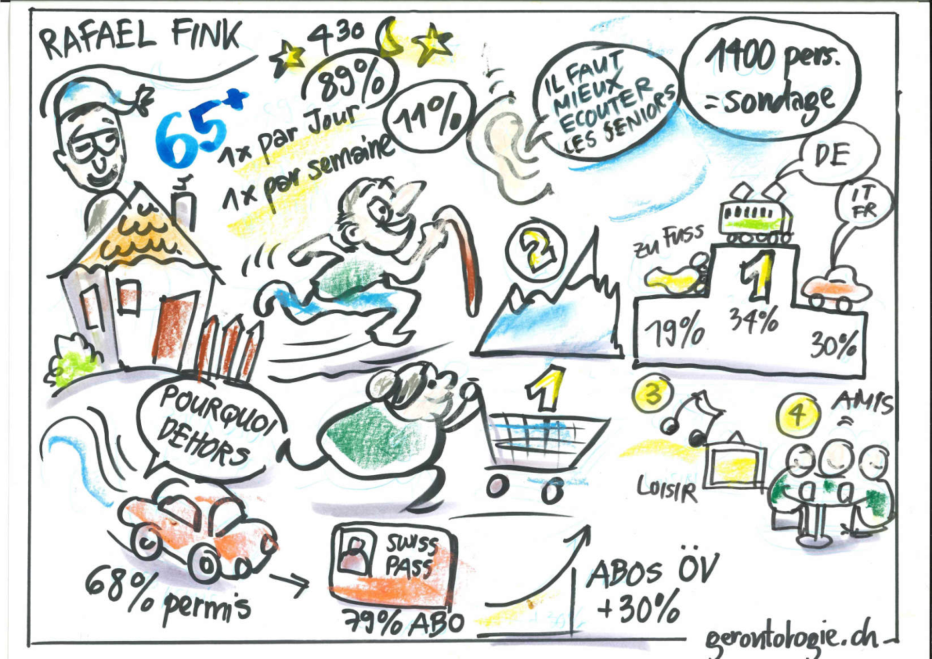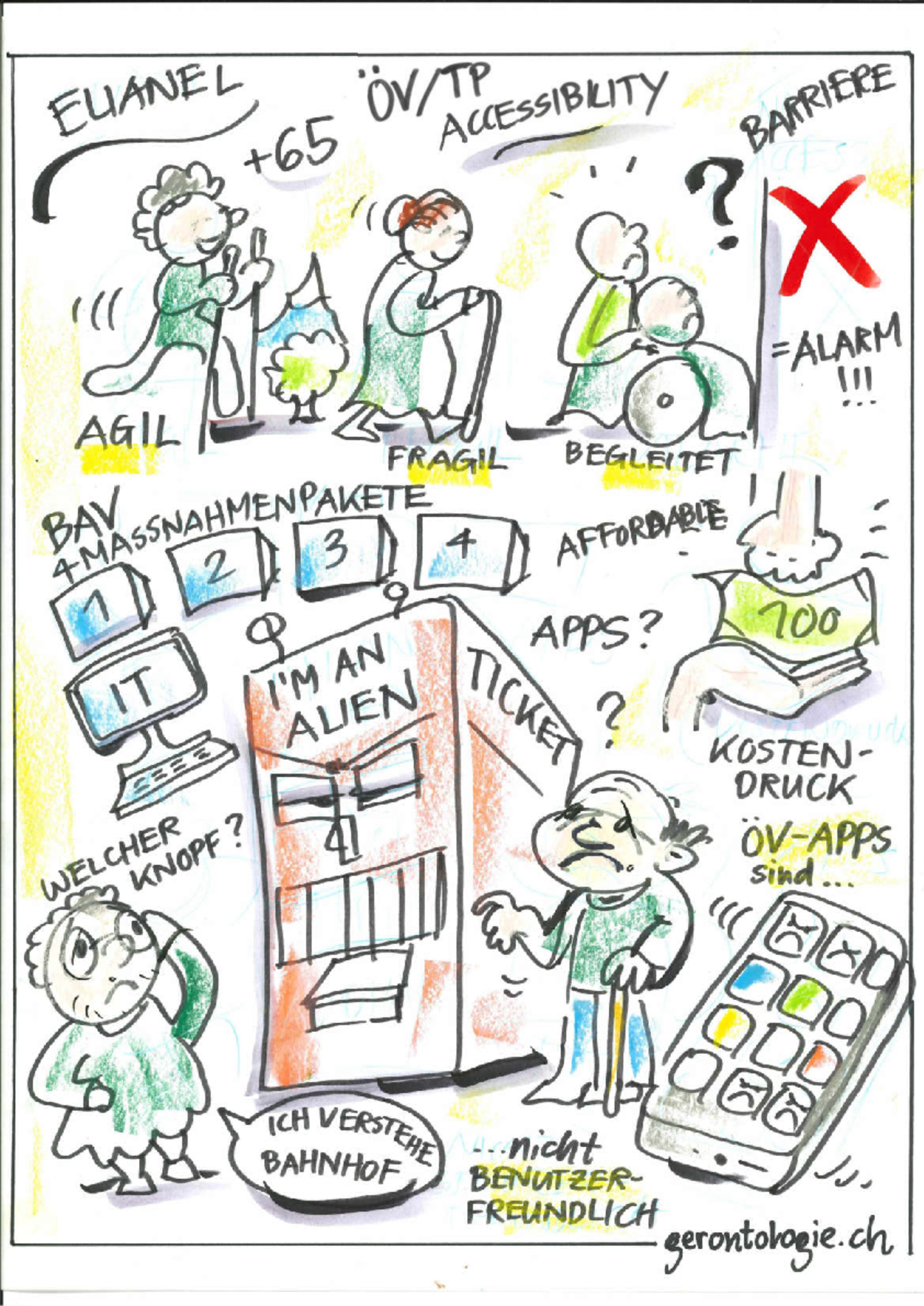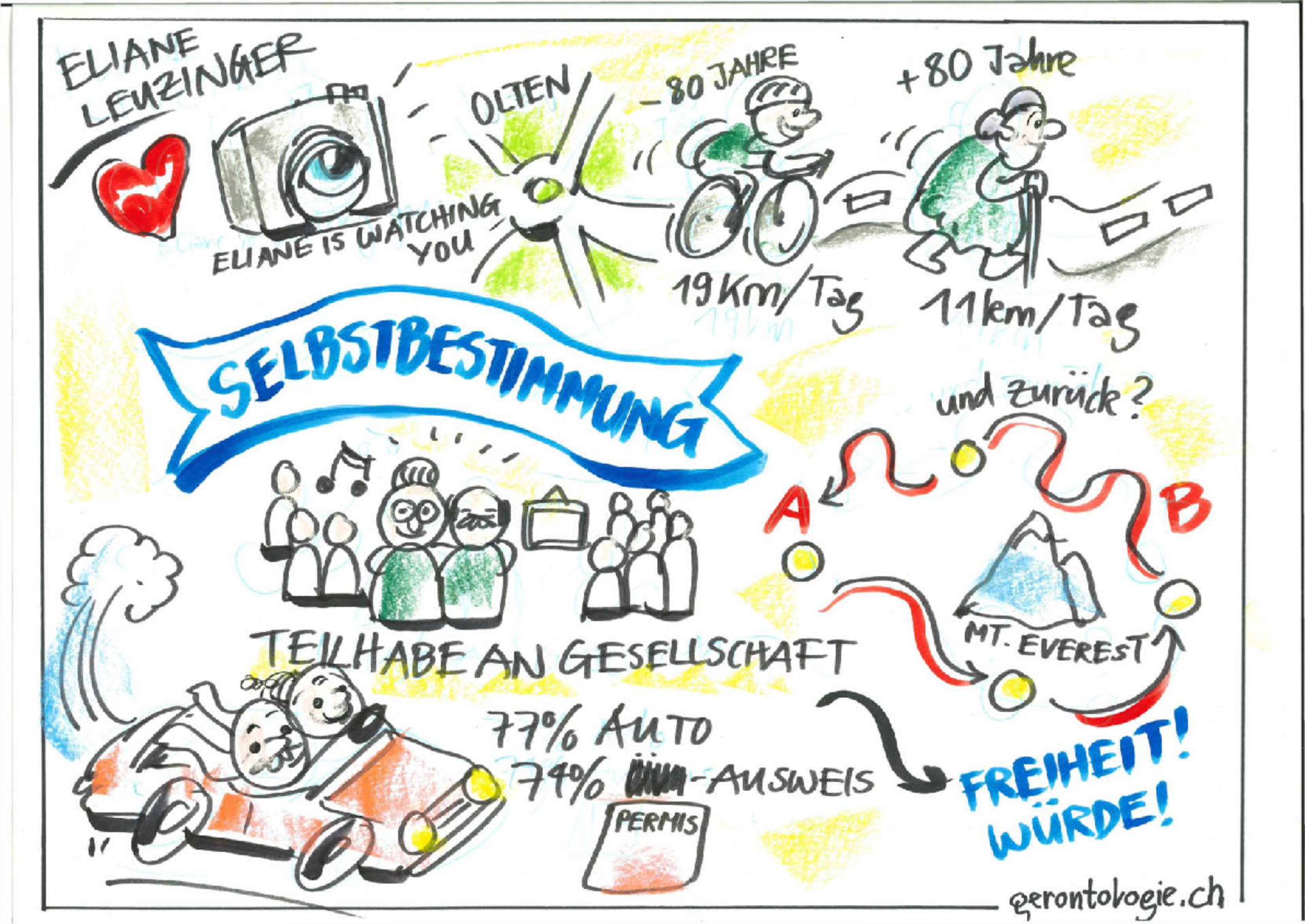 Herzlichen Dank allen, die zum Gelingen der 4. Nationalen Fachtagung GERONTOLOGIE CH «En route - interprofessionelle Ansätze für die Mobilität im Alter» beigetragen haben! Über 100 TeilnehmerInnen waren am 14. September in Olten mit dabei und folgten den spannenden Referaten aus Wissenschaft und Praxis. Erstmals wurde die Tagung cartoonistisch begleitet von Adrian Weber, der die einzelnen Referate im Anschluss treffend «auf den Punkt» brachte. Wir freuen uns, Ihnen untenstehend seine Cartoons zur Verfügung stellen zu können.