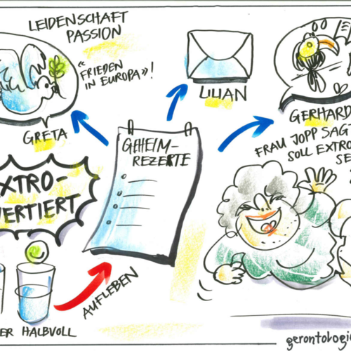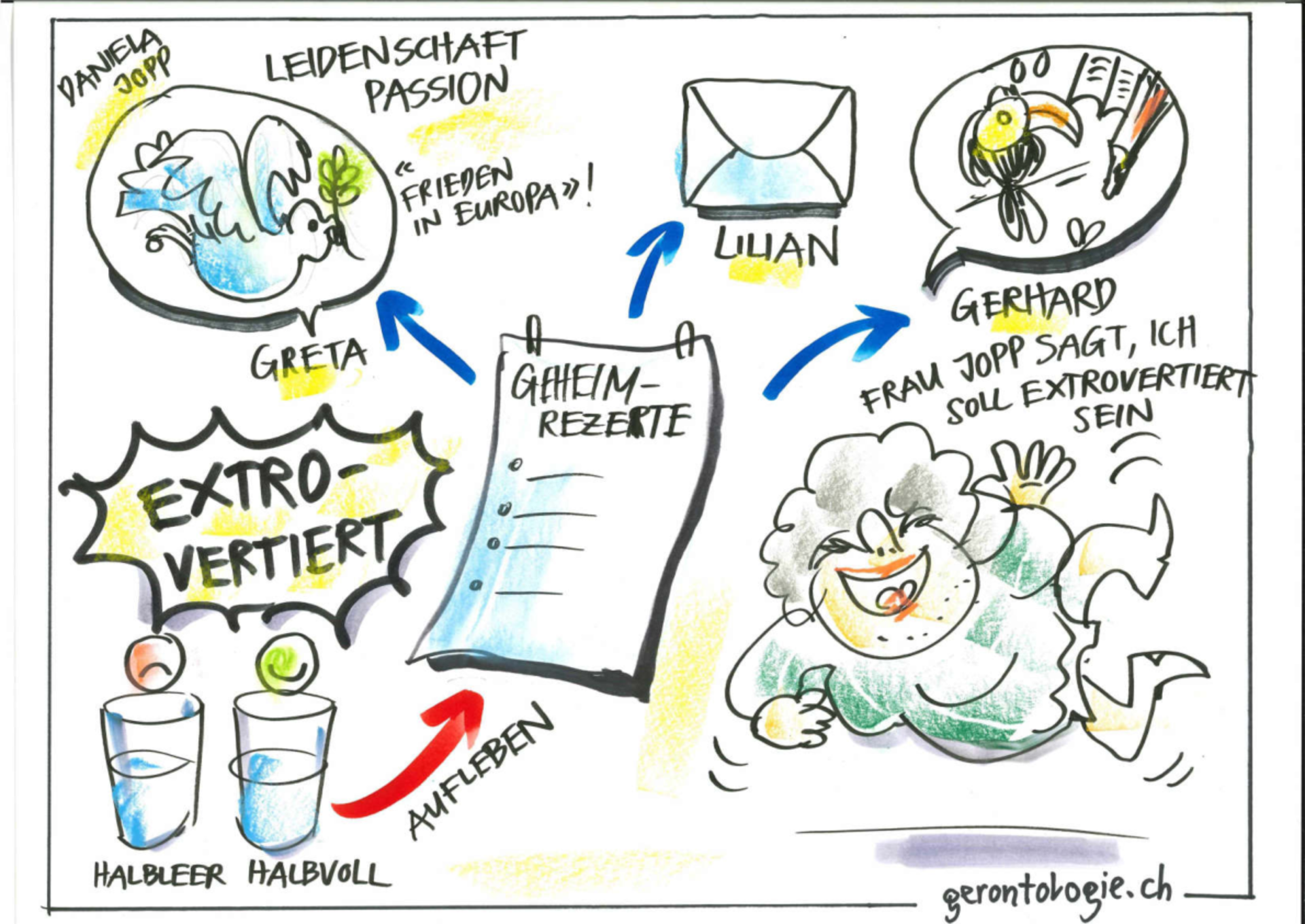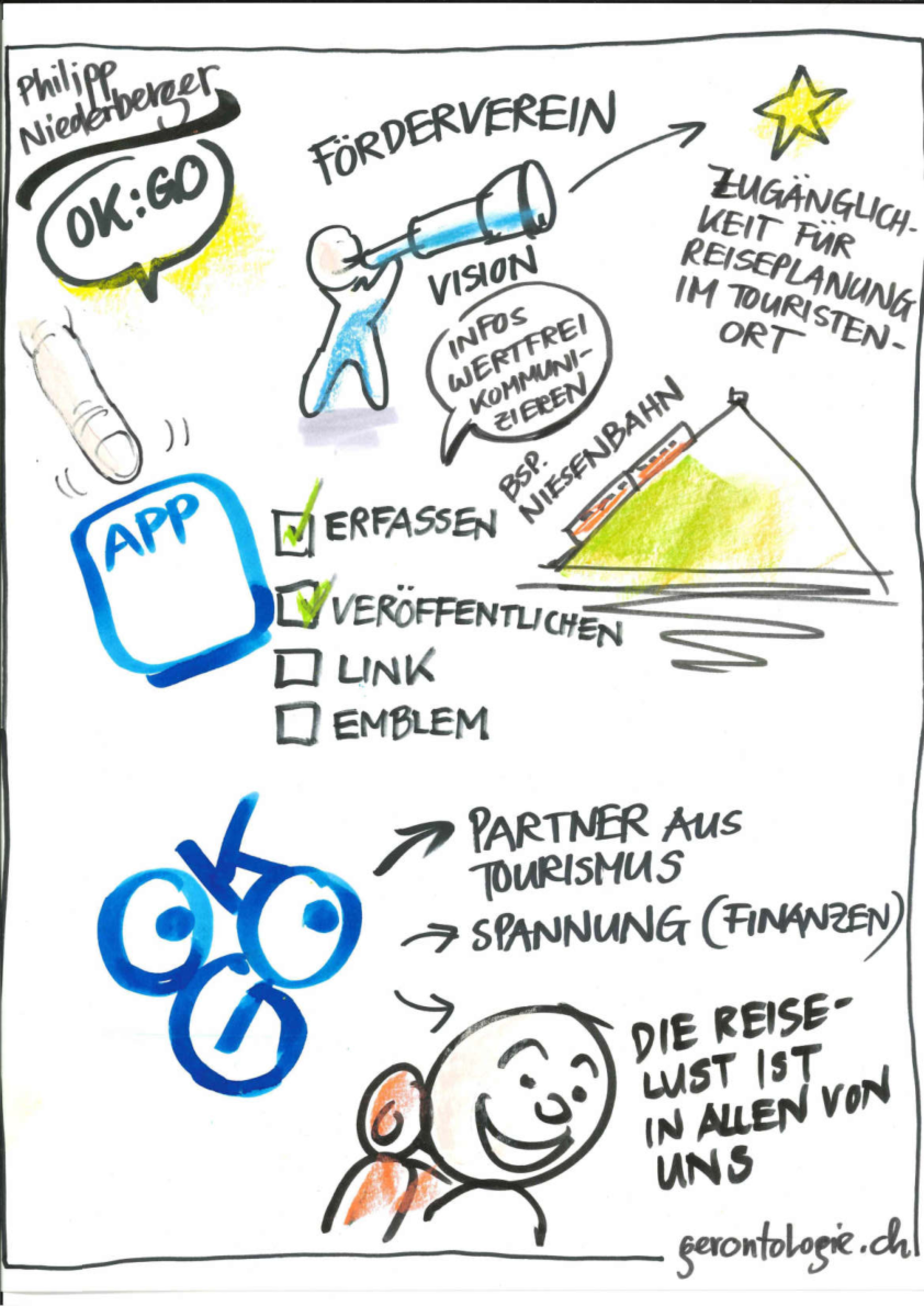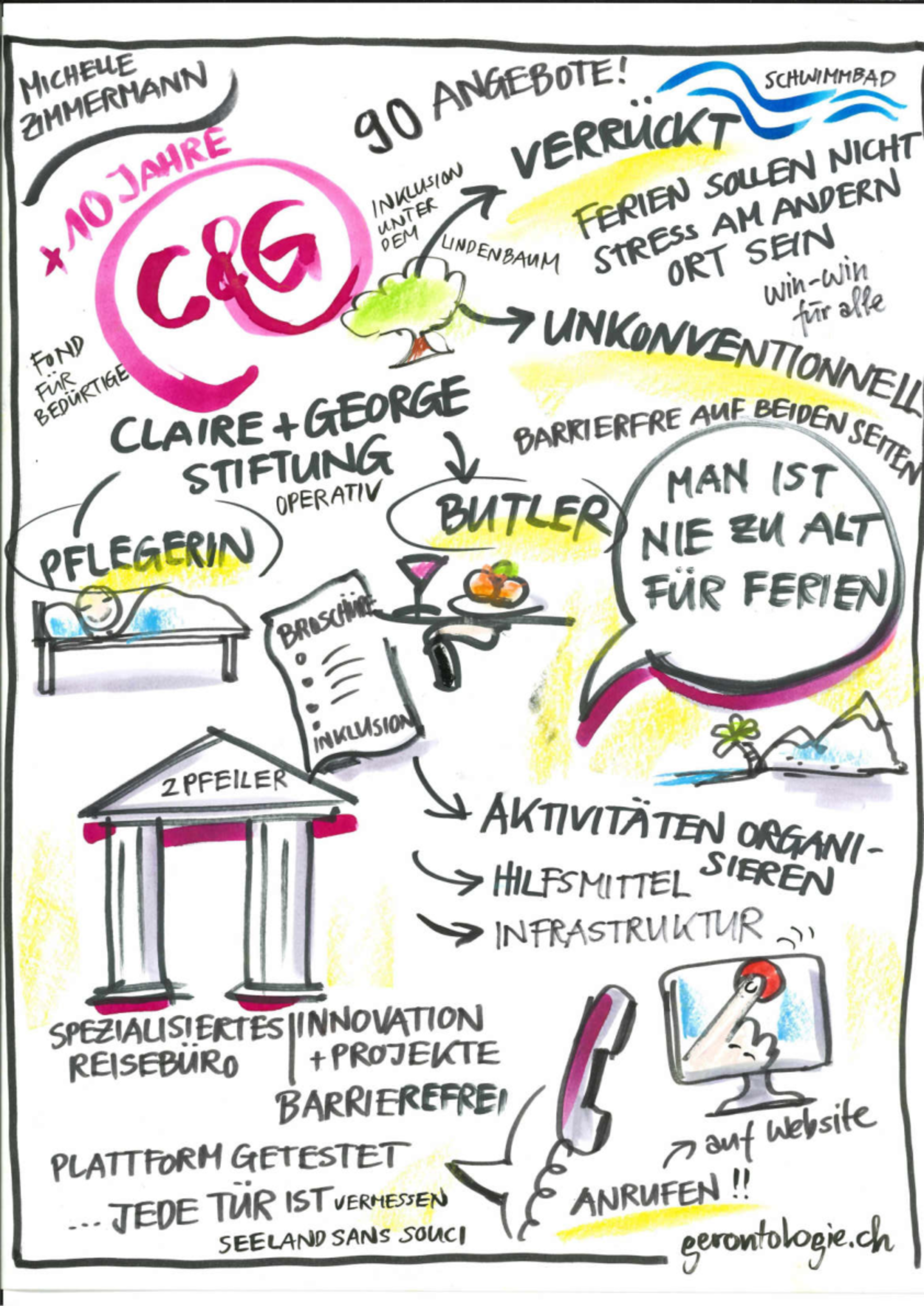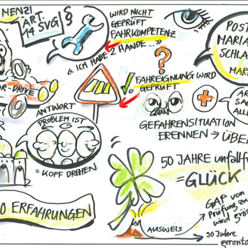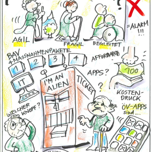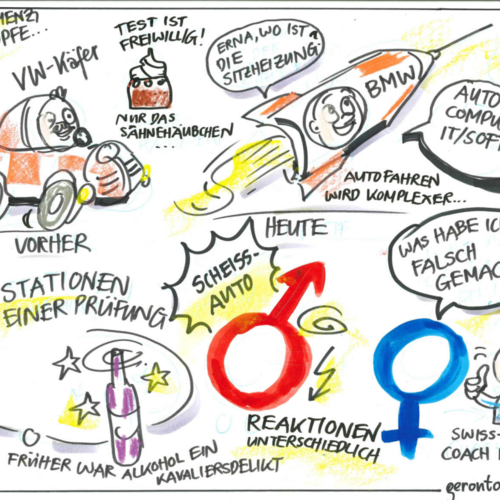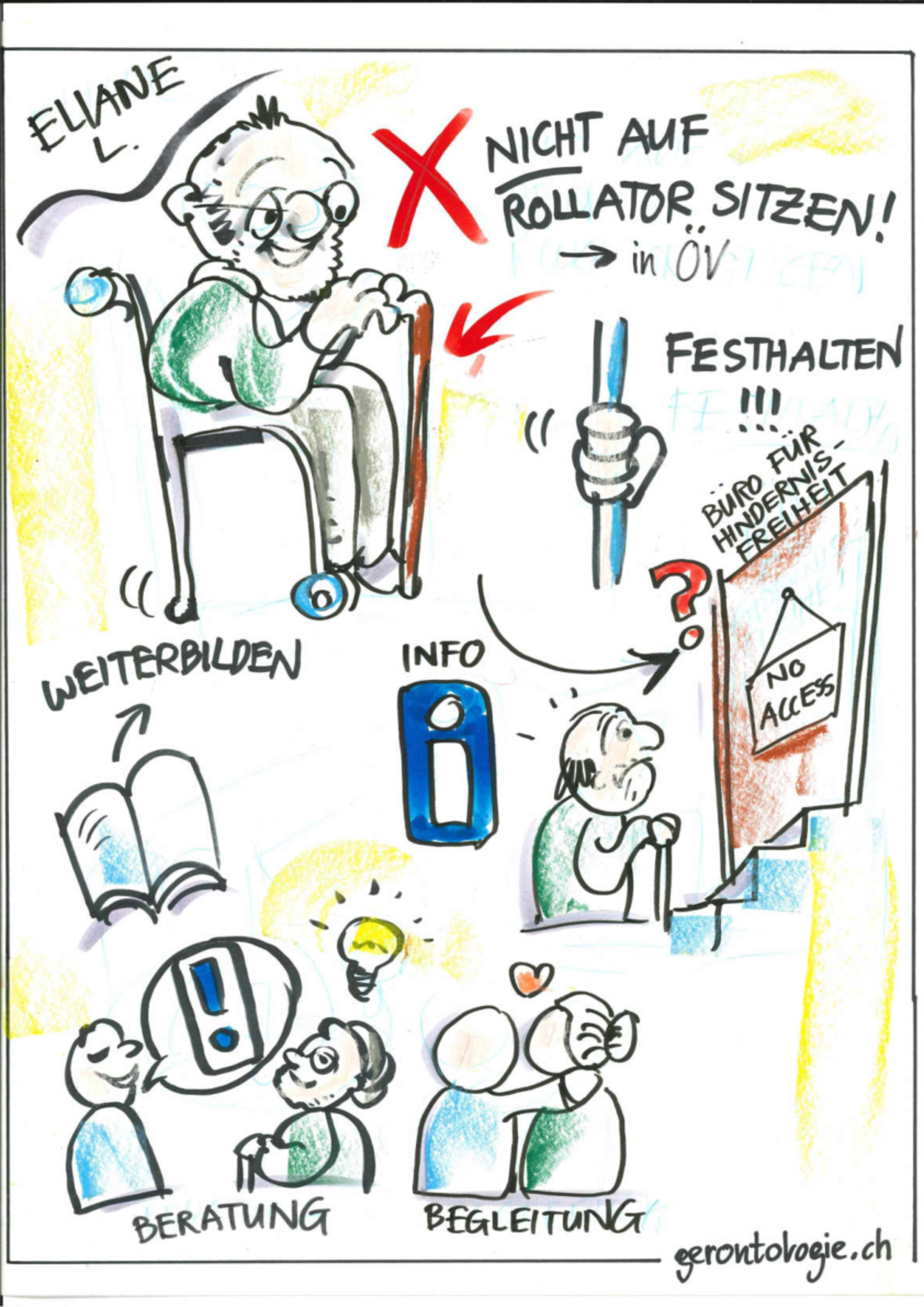 Herzlichen Dank allen, die zum Gelingen der 4. Nationalen Fachtagung GERONTOLOGIE CH «En route - interprofessionelle Ansätze für die Mobilität im Alter» beigetragen haben! Über 100 TeilnehmerInnen waren am 14. September in Olten mit dabei und folgten den spannenden Referaten aus Wissenschaft und Praxis. Erstmals wurde die Tagung cartoonistisch begleitet von Adrian Weber, der die einzelnen Referate im Anschluss treffend «auf den Punkt» brachte. Wir freuen uns, Ihnen untenstehend seine Cartoons zur Verfügung stellen zu können.