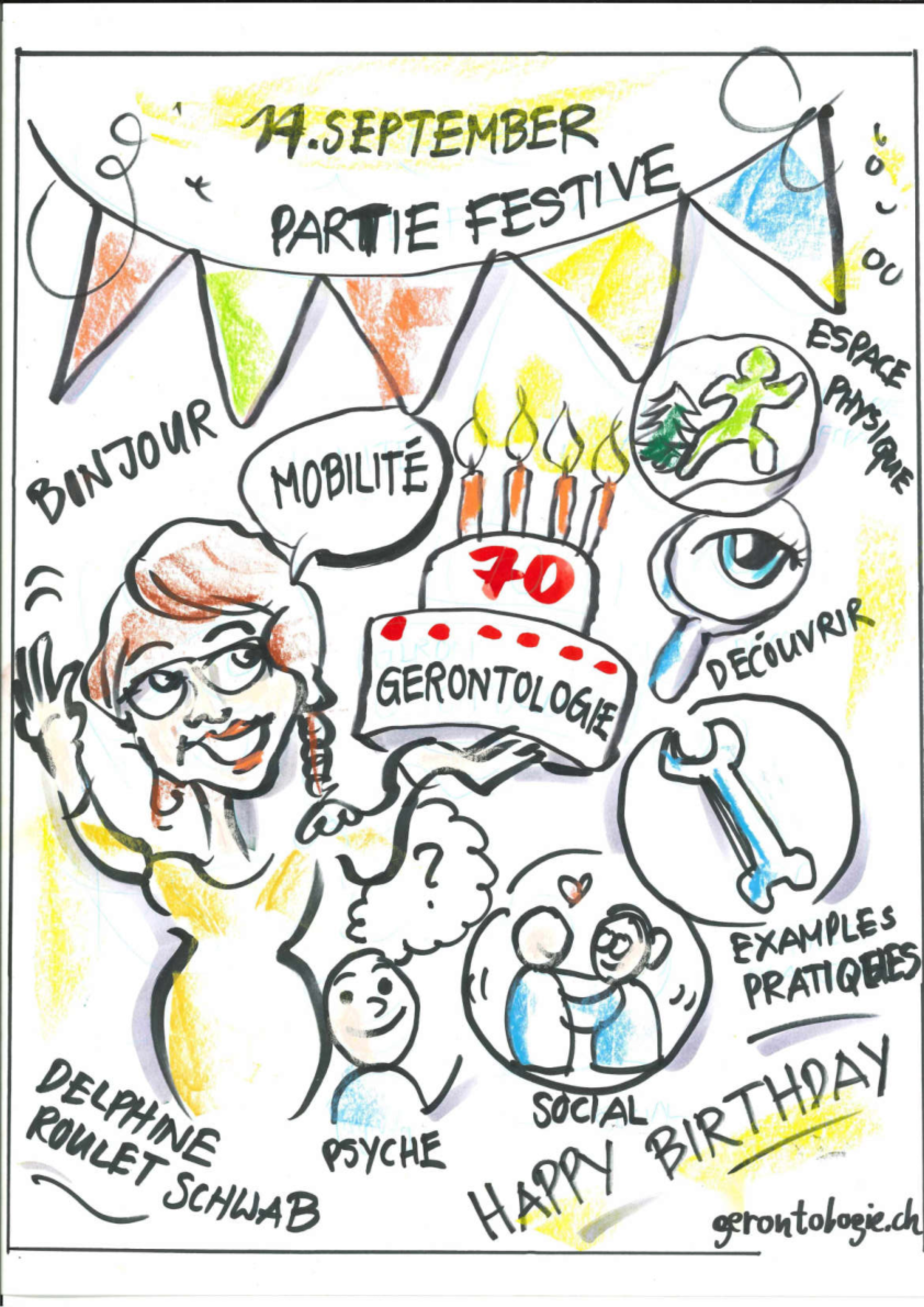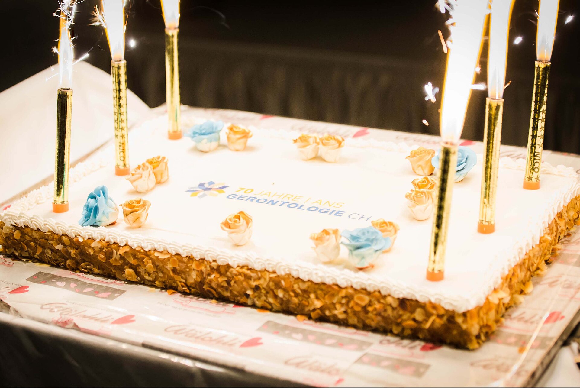 Es folgte das Jubiläumsfest «70 Jahre GERONTOLOGIE CH». Zu den vielen Eindrücken des Abends gehören Lionels buchstäblich zauberhafte Showeinlagen, der interessante Videobeitrag aus dem Generationenhaus Bern, die Vernissage unserer Slideshow zur Jubiläumskampagne «Wann bin ich alt?» und nicht zuletzt natürlich die Geburtstagstorte mit den Wunderkerzen...