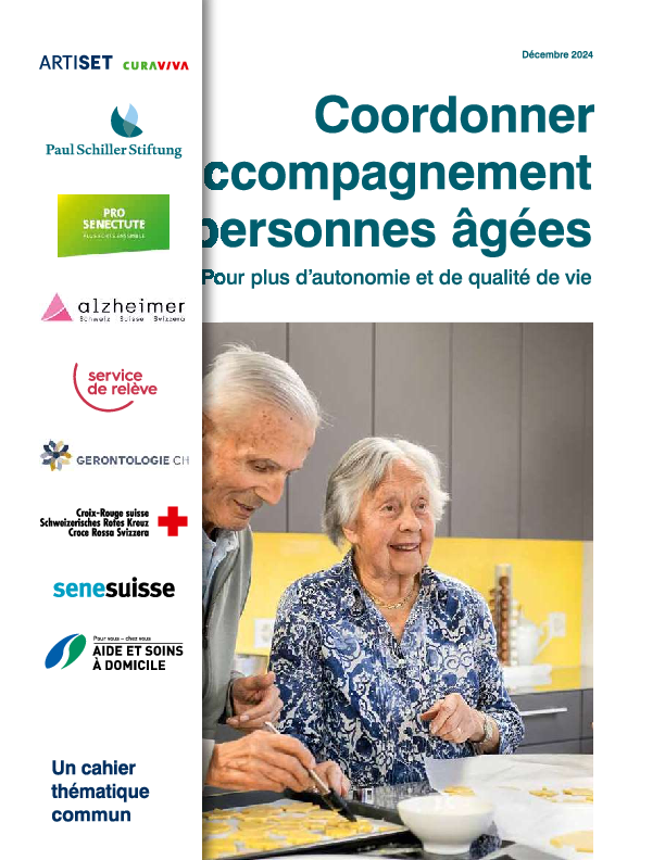 Le cahier thématique commun d'ARTISET avec CURAVIVA, la Fondation Paul Schiller, Pro Senectute Suisse, Alzheimer Suisse, GERONTOLOGIE CH, Service de relève Suisse, la Croix-Rouge Suisse, senesuisse et Aide et soins à domicile Suisse, qui vient de paraitre, est consacré à l’accompagnement coordonné des personnes âgées.
