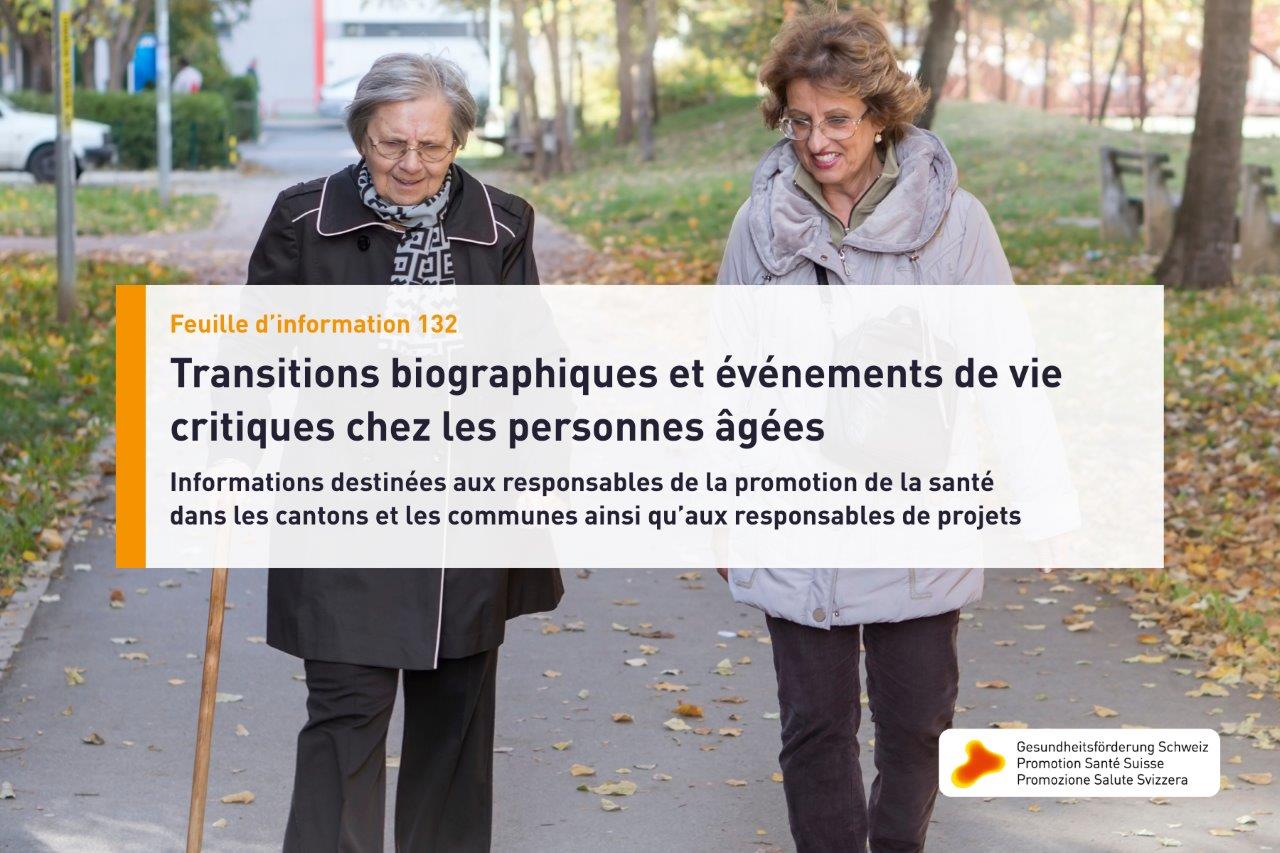 Qu'il s'agisse de la retraite, du décès du / de la partenaire ou du déménagement dans un EMS: La nouvelle feuille d'information de Promotion Santé Suisse montre comment la santé des personnes âgées peut être renforcée, même en période de bouleversements. Elle s'adresse aux responsables de la promotion de la santé dans les cantons et les communes ainsi qu’aux responsables de projets.